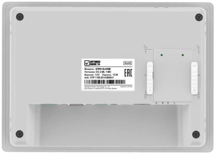 OTP210-070E – это сенсорная панель оператора с диагональю 7 дюймов с разрешением 1024*600 пикселей. OTP210-070E имеет порт Ethernet, 3 порта COM RS-232/422/485, USB Type С, USB Type A, RTC, часы реального времени, Flash ROM 4000 MB, RAM 256 MB и CPU ARM 2-х ядерный Cortex-A7 1 ГГц.